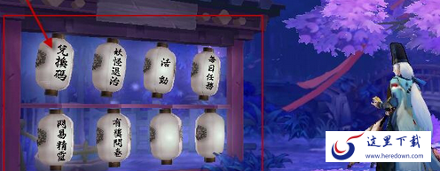 在游戏主界面灯笼处就有【兑换码】灯笼。玩家可以操控晴明来到画面左边,这里有一排灯笼,其中就有【兑换码】灯笼,点击即可输入手中的兑换码了。