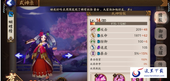 蝴蝶精是单体回血式神,回血量是由目标生命上限决定的。队友残血可以增加自身速度,在PVP模式中的效果比PVE中好。
