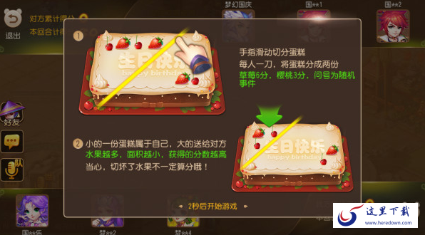 祖国的生日,怎么能少了蛋糕呢?3人组队即可参加欢乐切蛋糕,每个人轮流出手,切出的较小的那块蛋糕属于己方,最后以蛋糕上面水果的多少和蛋糕面积大小来统计分数,而问号则会有不同的特殊事件,此外还有专属称谓等你拿来。