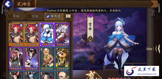 说明:雪女带日女四件套or雪幽魂四件套,妖琴师堆速度,妖琴师开场拉雪女控住对面。用日女的话附带打进度条30%的效果,30%触发率使得雪女使用收益很大。用雪幽魂的话冰冻概率更高。控住对方的话,这边随便怎么玩都行。