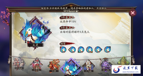 1、对于一波流或者双速流的阵容,而且没有带座敷童子的,建议带火灵,不用赌50%几率,初始就有足够的火进行提速。