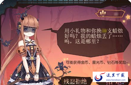 2、在万圣节庆典期间,时不时会遇到喜欢恶作剧的小恶魔,可以将多余枫糖蜡烛送给她们换取惊喜奖励哦~不过不用担心,即使拒绝了她们,也不会真的偷走蜡烛的哟!