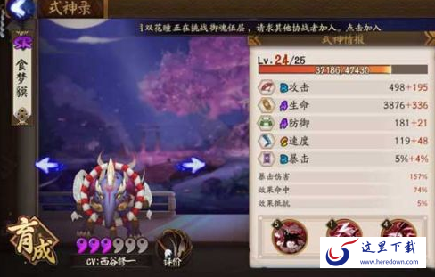 食梦者:3火 有敌方全体有30%的概率催眠2回合,当觉醒后每沉睡一个目标会让生命值最低的队友回复食梦貘5%的生命值。在强化满后控制几率高达50%。