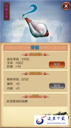 青螺是《古云传奇》的蓝色法器,其色泽青润,属于防御系法器,强化可以提升生命以及抗暴,精炼可以提升魔抗和闪避。