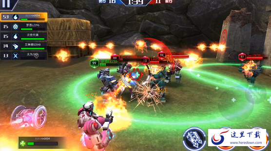 在射击游戏中,键鼠的灵活瞄准和手游触屏操作有一定的差距,手游这是无法回避的问题。尽管很多游戏想以自定义按键解决这个问题,但是这条鸿沟在现有的技术下似乎是不能逾越的。《末日机甲》在移动端创造性的将团队合作和枪战游戏结合在了一起:以机甲佣兵极具特色的职业体系弥补了操作手感上与键鼠。双枪机甲射速快,精度高,移动快;散弹机甲则攻击范围大,伤害高;而烈焰和冰冻机甲还能发出火环冲击或冰封护甲,击退敌人或者降低所受到的伤害。