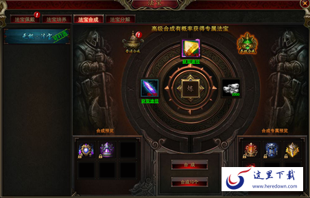 26级以上的玩家可以使用法宝材料,在法宝合成界面进行普通合成或高级合成。