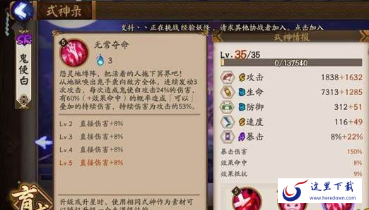 第二个技能:魂狩,这个技能可谓是通吃技,伤害不低,满级可以达到90%的攻击,而且是群伤!!死的敌人越多,召唤的越多,并且即使杀了召唤出来的小鬼,小鬼也会爆炸造成伤害。PVP的话主要克制复活流(什么桃花妖啊,童男啊,只能眼睁睁的看着小鬼占位),PVE的话对于刷觉醒材料算是很好的辅助输出,还能当诱饵,但是打御魂的话还是算了吧,只是给大蛇添加输出,一定慎用,而且挂自动的话会比较坑,只要有空位就必用魂狩,没空位才会出无常夺命,很尴尬。所以还是不特适合当狗粮队长刷图,同样也是期待以后PVE的功能开发。