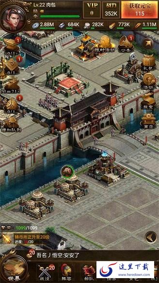 游戏中拥有民心、矿点、兵种,主公,繁荣、坐标、研发、战役、战法等11大特色系统,各个系统拥有不同的玩法。比如民心系统,能帮助玩家获得大量资源;战法系统,则可以大大加强部队的作战能力;兵种系统,则能让不同玩家打造出具有自身特色的部队,帮助玩家夺取天下。这11大特色系统既相互独立,又相互影响。掌握好这些系统,将会更好的助你争霸天下。