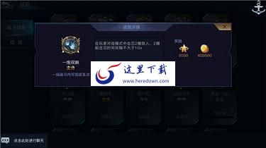 成就系统的加入为战斗带来更丰富的乐趣,每个成就的获得都需要满足特定条件。即便是普通成就,也会随着达成条件的升级而进阶为史诗级。比如“幸运一击”要求攻击弹药库,引发殉爆来摧毁敌舰,击沉1艘可得普通成就,击沉20艘方可获得史诗成就。史诗成就“一炮双响”则要求玩家击沉2艘敌舰的间隔不大于10秒,对于敌舰血量和位置的把握需要非常精准。而传奇成就“战机杀手”需要击落敌方超过50%的战机,且不少于30架,这不但要求自身技术过硬,也需要敌方拥有足够数量的飞机,实力和运气缺一不可。
