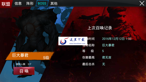 ◇联盟boss属于联盟集体活动,达到召唤条件后,由盟主或副盟主自主选择时间召唤出boss开启;