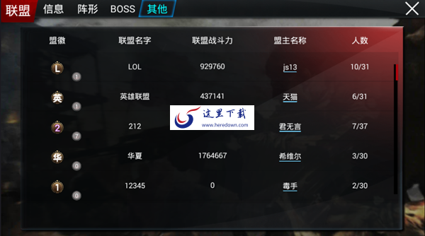 ◇联盟列表会显示所有游戏中的联盟;