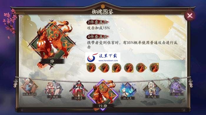 虽然是一件输出型御魂,但更像是自保用御魂,反击只会打出普通攻击,所以推荐大家较容易被集火的输出式神可带狰,尤其是酒吞童子,绝配。不过同样是20%的触发几率,但是小编觉得还是轮入道更好一些,因为轮入道是主动回合,可以放大招。