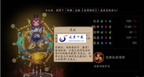 技能二:灵运,被动技能,他受到攻击时有20%概率获得1点鬼火,(觉醒开启:如果他行动时鬼火数为0则立即获得1点鬼火。)