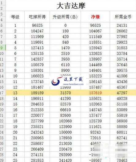 大吉达摩可通过升级来获得更多的经验,但是大吉达摩升级也需要不少金币,通过以上的大吉达摩升级经验及花费汇总表,可以看到大吉达摩在13或者14级吃掉,经验和金币花费算是比较均衡的