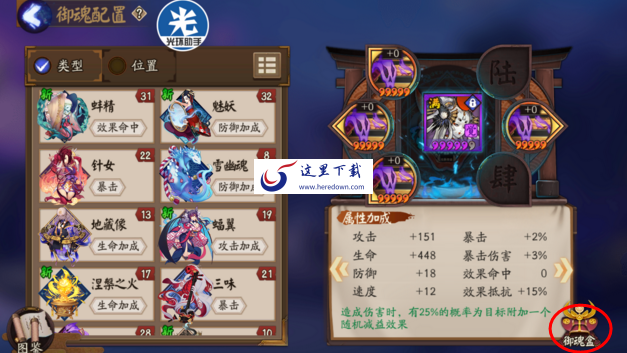 三、进入御魂配置界面,可以看到右下角御魂盒