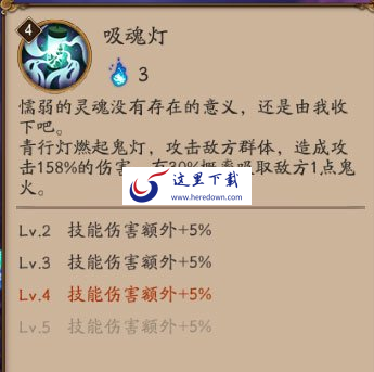 三火技能是群攻,基础伤害就有158%,加上技能升级,伤害更加可观。重要的是,被攻击的每个目标都有30%的几率被吸取1点鬼火!如果脸好的话,一口下去,吸走四五点,对面开场直接断火。