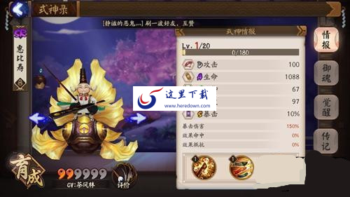 被动技能,惠比寿受到攻击时,有20%概率获得一点鬼火。