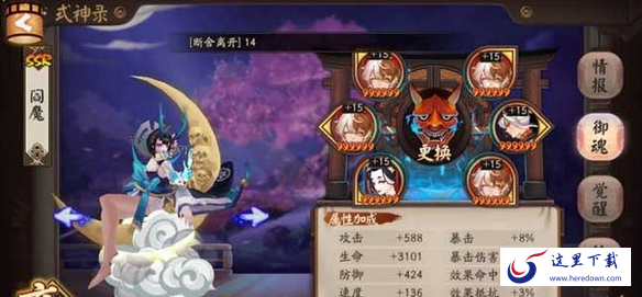 基本绝迹的组合搭配,让她当输出为感觉不太合适,当然配上这样的御魂,打出怨魂重压的时候,输出高,又有控制。