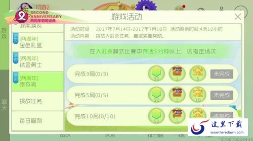 在大逃杀模式比赛中存活5分钟以上,达指定场次: