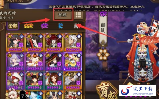 1、在式神录里点击“预设”(体验服8月9日更新,正式服后续会加入)