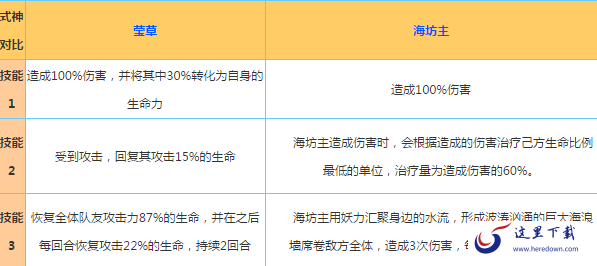 攻击力:实际上两者都是需要依靠高攻击高伤害来进行治疗的,而海坊主觉醒后攻击能够达到S,能够造成的伤害是非常可观的。而萤草一旦培养起来,输出多爆炸就不多说了。