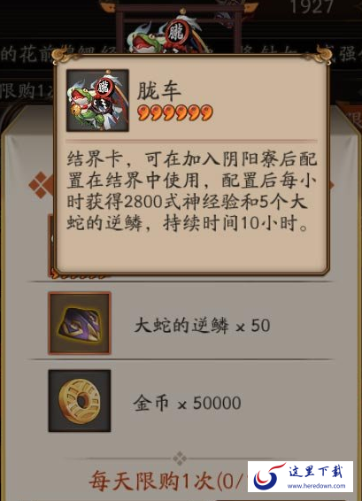 *购买后获得:6星胧车结界卡*1,大蛇的逆鳞*50,金币*50000