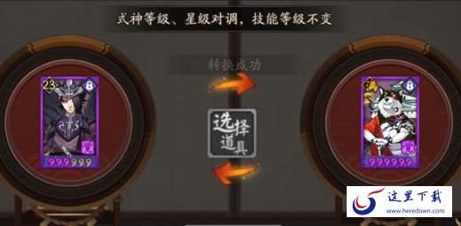 点击中间的道具,选择6星式神转换符。然后右边是要升星的式神(除了达摩)。两个式神永久性的交换星级和等级,原有的技能等级不变。
