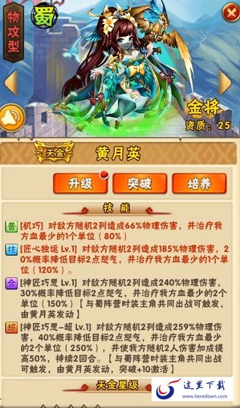 作为蜀国传统的治疗将,金将黄月英在对敌方造成攻击的同时还能恢复我方武将的生命值。专属必杀技能可以对我方武将增加护盾效果,建议在敌方怒气值将满时释放必杀技,最大化护盾的价值。