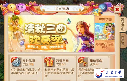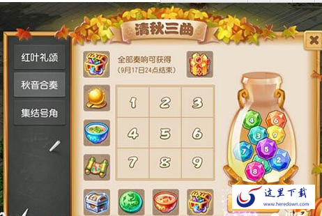 秋音弥漫,蕴含秋季的气息,为我们弹奏的是一曲秋的乐章。在清秋三部曲第二部“秋音合奏”中,玩家每天可登录秋音宝盒页面,聆听一个秋音,聆听后可以领取一次奖励。需要注意的是,被聆听的秋音需要100点活跃进行涂色奏响,当奏响后的秋音在横、斜、竖形成一排时,可以领取对应的激活奖励,全部激活时更将有一份神秘大礼哦!