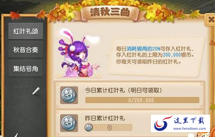 红叶漫天,饱含秋季的味道,给我们呈现的是一篇秋的礼颂。清秋时节,也是开学季,因此,此番在《梦幻西游》手游清秋三部曲第一部“红叶礼颂”中,玩家每天所花费银币的20%将存入红叶礼中,存入的部分将作为红叶礼返还给玩家。值得注意的是,存入红叶礼的银币上限为200,000,玩家第二天可以领取前一天的红叶礼。值此开学季,无论你是学生,还是上班族,在游戏内可以收到这样一份带有特殊意义的奖学金,相信都是令人欢喜的!