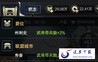 攻下城池会给联盟全体成员提供属性,其中就有带兵数加成的城池。联盟普通成员可以获得基本加成,盟主和本城池官员可以获得更高加成。攻下城池后获得势力值,会获得爵位,爵位也是提供带兵加成的。