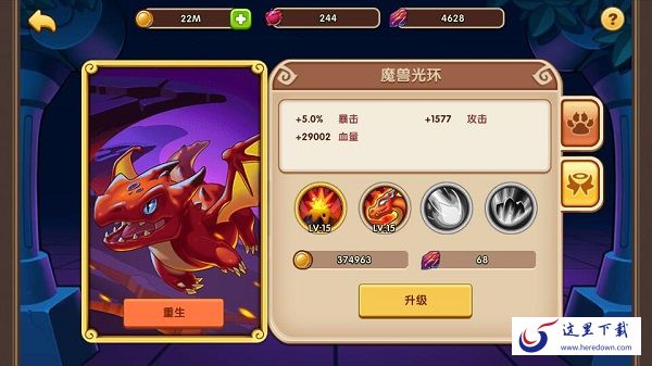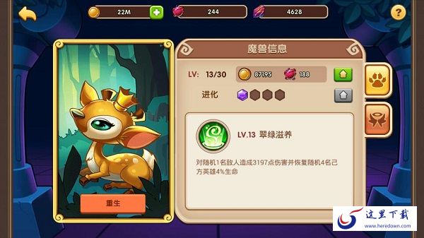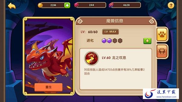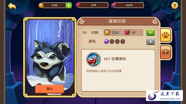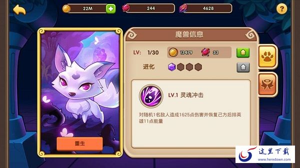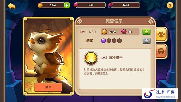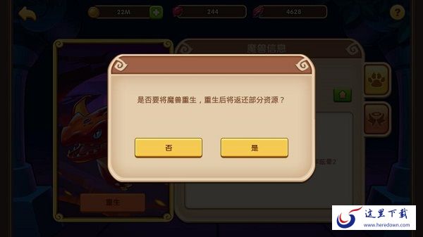 PS: 如果你发现自己培养错了魔兽也没关系哦,我们提供了重生功能,可以返还部分消耗材料,免除你的后顾之忧。