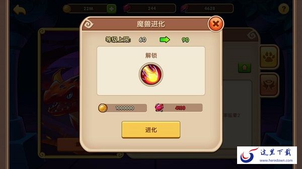 魔兽进阶:当魔兽升级满后,可以为魔兽进阶,使魔兽的主动技能大幅度加强,还能解锁魔兽的被动技能。