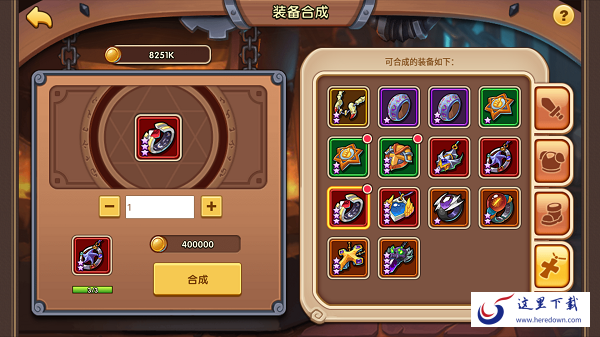装备合成:黄色以上装备可以进行合成,合成需要消耗对应装备和金币。