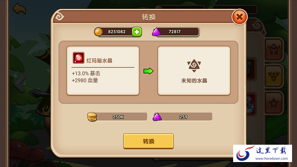水晶转化:消耗魔法之尘和金币随机改变水晶的属性。