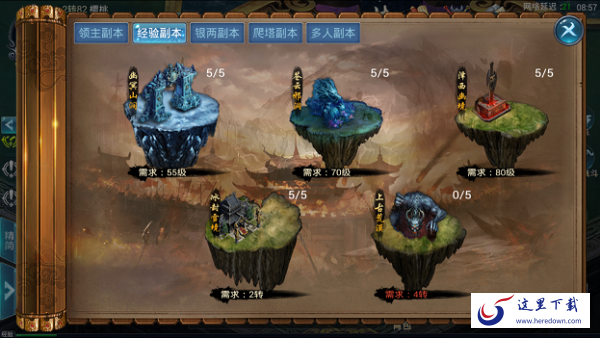 当玩家达到一定等级时,每天都有五种经验副本可以打,当然级别要大于或者等于副本的需求,难度越高获得的经验也会更多。但由于有次数限制,玩家可以选择花费10元宝,就可以买到5次经验副本。