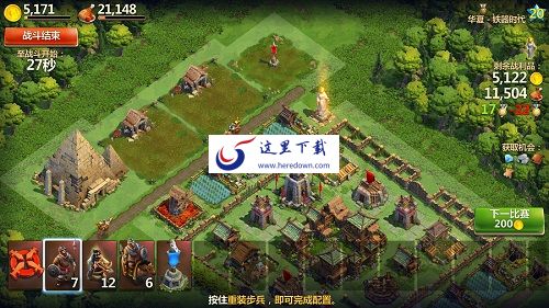 战斗的兵种的选择可根据每次的作战目的进行自由搭配。对于掠夺资源可以骑兵突击队为主要兵种,而面对防御建筑多的敌对文明则需要更多的骑马兵,获取全胜红利奖励则需要各类兵种合理搭配,且对于战斗需要策略的进行布局。