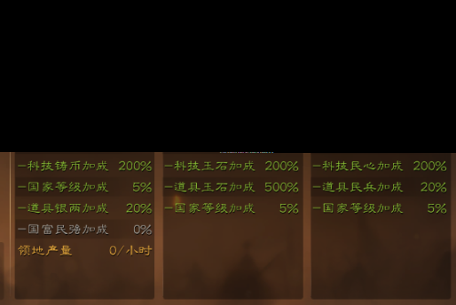 国家等级:提升国家等级可以提升资源产量,只影响资源建筑产出的资源。