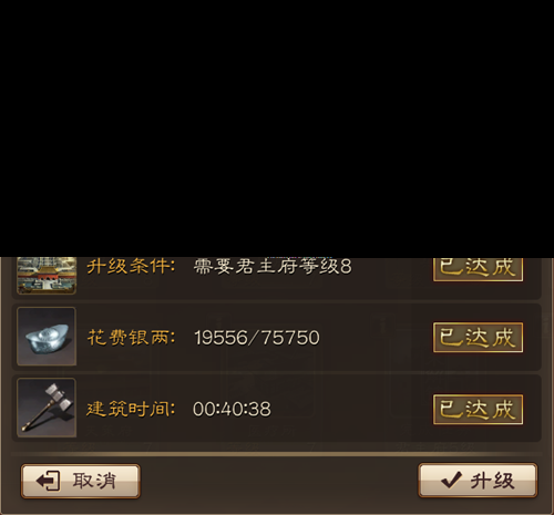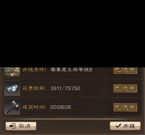 银两:主要用于建筑升级和受伤士兵招募。还可以在银两商店和军功商店中购买道具。