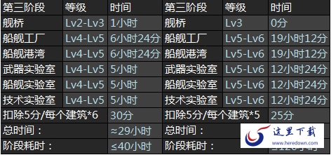 在舰桥升级到Lv3之前,所有实验室和核心建筑都需要达到Lv4,升级时间大约如下: