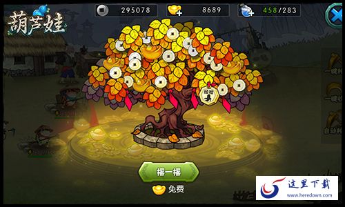 在《葫芦娃》的世界之中,有一颗山神赐给葫芦娃们的神树名叫“摇钱树”,在付出少量元宝的基础上,玩家们在《葫芦娃》中可以利用摇钱树获取丰厚的银币,为葫芦娃们购买装备碎片以便升阶。每日前几次摇钱树的性价比还是很高的,并且10倍暴击银币的几率也是非常可观,玩家们一定要珍惜机会啦!摇钱树银币掉落的“哗啦啦”声是不是很好听呢?