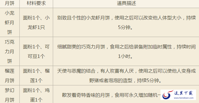 中秋佳节怎么能没有月饼呢,调皮的月兔已经在三界中撒下了很多月饼材料, 玩家只要完成日常任务就能获得月饼材料,通过材料就能亲手制作可口美味的月饼,快来试试自己能做出什么样的月饼吧!
