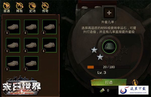 低级装备属性少,高级装备打造出的属性会比较多,无论怎样品质打造的第一条属性都是固有属性!幸存者要做的是,只要有奖励的装备或碎片的玩法,都尽量去做,每日一做,赚取更多的装备,用作升星装备。