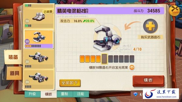 镶嵌在装备上的晶石也可以免费卸下,在更换武器和装备时,可以将不用的装备上的晶石卸下来打造在新装备上。