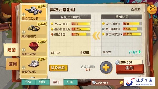 重制相当于重新打造一把武器,武器的基础属性值将会全部发生变化。重制相当于随时对装备进行突破,但每次重制时的属性值将会随机浮动。属性条目前面的五角星图标有金、银、铜三种,代表了不同属性对于当前角色的重要程度。重制可以反复进行,在重制时,如果重制得到的装备战斗力高于当前武器的战斗力,就点击替换属性得到一件更强的装备吧!