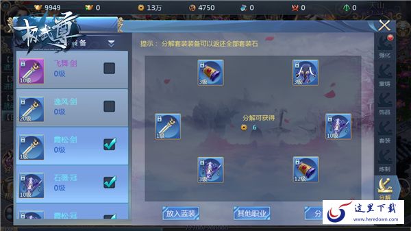 5、装备分解:替换下来的装备,如果没用的话可以进行装备分解,装备分解会返还强化所用的金币、经验等材料哦