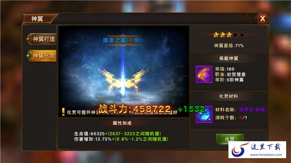 1、装备:这个是最直接的战力提升来源。而不得不提的是,翅膀对于战力的提升非常明显!游戏中还有一个星级加成属性,装备的星级越高,获得的属性加成就越好。