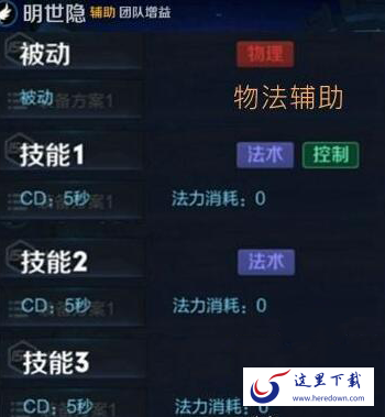明世隐,定位团队增益辅助,被动为物理伤害,其他均为法术伤害,有一个控制技能,类似蔡文姬。