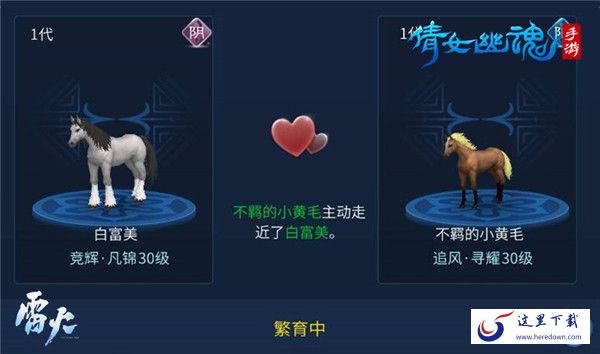 除此之外倩女手游还推出了游戏中的首个生育系统——马匹繁育,也可以帮助玩家获得新的小马驹。通过马匹繁育得到的小马驹将会有机会遗传父母的外观和技能,同时两匹马匹的品质将会影响后代的品质,与好友的马匹繁育将会使获得高品质马匹的概率增加。