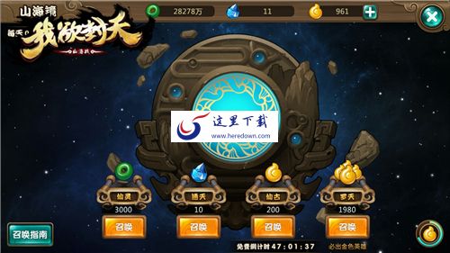 在《我欲封天山海战》中,英雄有强弱之分。英雄品质靠颜色来区分:白色,绿色,蓝色,紫色,金色,闪金分别代表不同强度等级的英雄。金色和闪金品质的英雄无论在技能方面还是属性上都非常强力,是玩家的最终目标。英雄的招募方式多种多样,其中最常见的有灵石招募,天晶石招募和仙玉招募,不同的招募方法使用的材料不同,获得的英雄品质也有很大的差别。另外,玩家也可以在封仙台使用精魂神魄兑换。